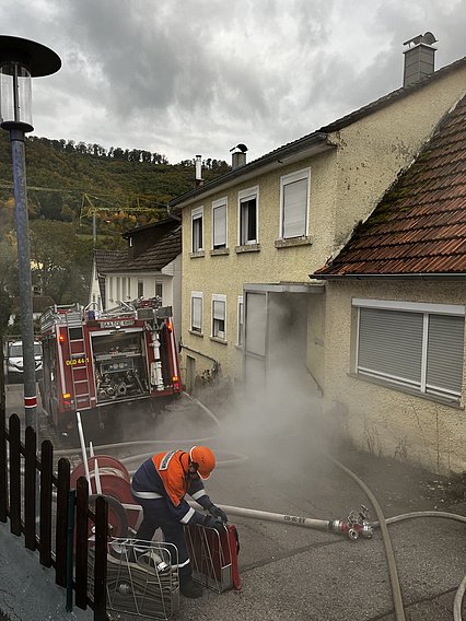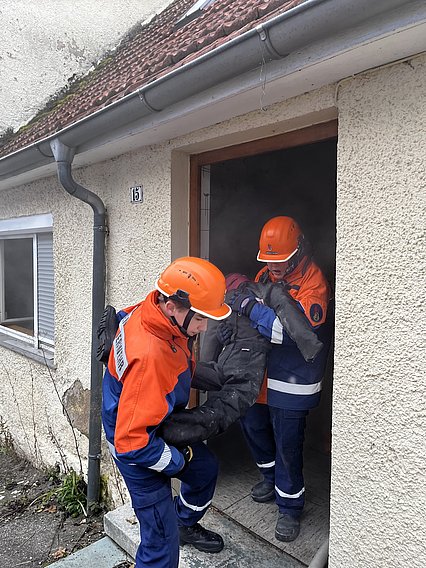 Großeinsatz am Nachmittag: Am späten Nachmittag bereiteten einige Betreuer heimlich den größten Einsatz des Tages vor. In der Mühlstraße wurden zwei unbewohnte Gebäude mit Disconebel verraucht und zwei Puppen als Verletzte versteckt. Als der Gong ertönte, ging alles blitzschnell: Uniformen an, Fahrzeuge besetzt – und schon auf dem Weg. Vor Ort staunten die Jugendlichen nicht schlecht, als tatsächlich Rauch aus den Häusern drang. Sofort wurde eine Wasserversorgung aufgebaut, Schläuche verlegt und der Angriffstrupp ins Gebäude geschickt. „In dem Gebäude war es so verraucht, ich konnte nur am Boden entlangkriechen – wie bei einem echten Feuer“, berichtet Louis L. (15) nach dem Einsatz. Unter der Aufsicht der Betreuer, die als Gruppenführer und Einsatzleiter fungierten, wurde das Szenario erfolgreich bewältigt.