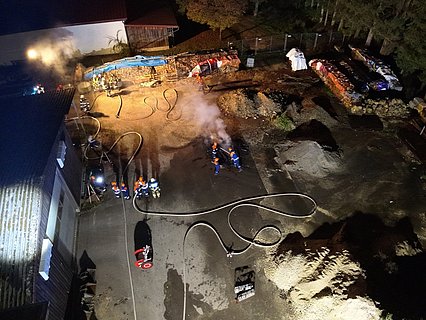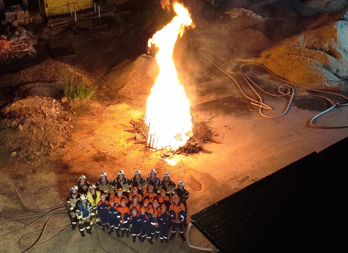 Nächtlicher Brandeinsatz: Gegen 0:15 Uhr ertönte erneut der Alarm: Brand im städtischen Bauhof! Schon auf der Anfahrt war Feuerschein zu sehen. Natürlich handelte es sich um ein vorbereitetes Szenario, aber mit echtem Feuer. Etwas langsamer, der Müdigkeit geschuldet, rollten die Jugendlichen die Schläuche aus, suchten Hydranten und löschten das „Feuer“ erfolgreich. „Zum Glück konnten wir viel Abstand halten, denn es war sehr heiß. Ich kann mir vorstellen, wie anstrengend das für die erwachsenen Feuerwehrleute in einem brennenden Haus sein muss“, sagte Leonard H. (13) nach dem Einsatz. Nachdem der Einsatzleiter „Feuer schwarz – zum Abmarsch fertig!“ meldete, wurden alle Gerätschaften geputzt und wieder aufgeräumt. Denn eines gilt auch beim Berufsfeuerwehrtag: Die Einsatzbereitschaft der aktiven Feuerwehr muss jederzeit gewährleistet sein.