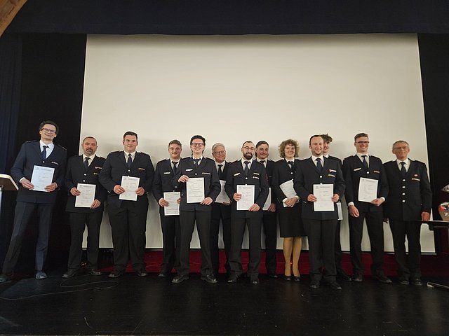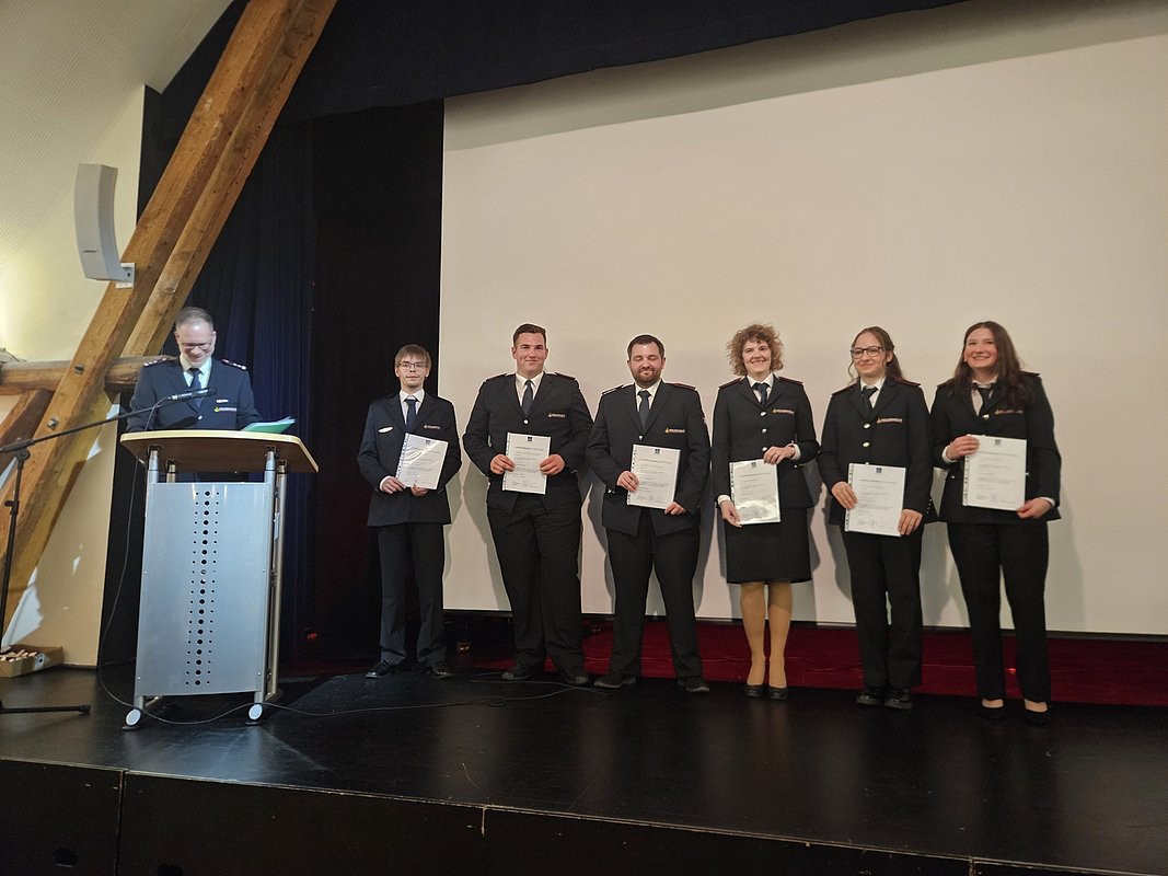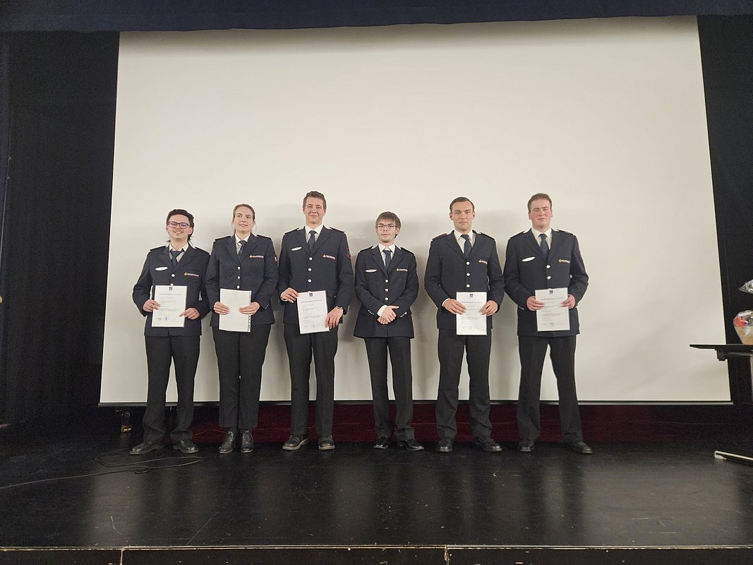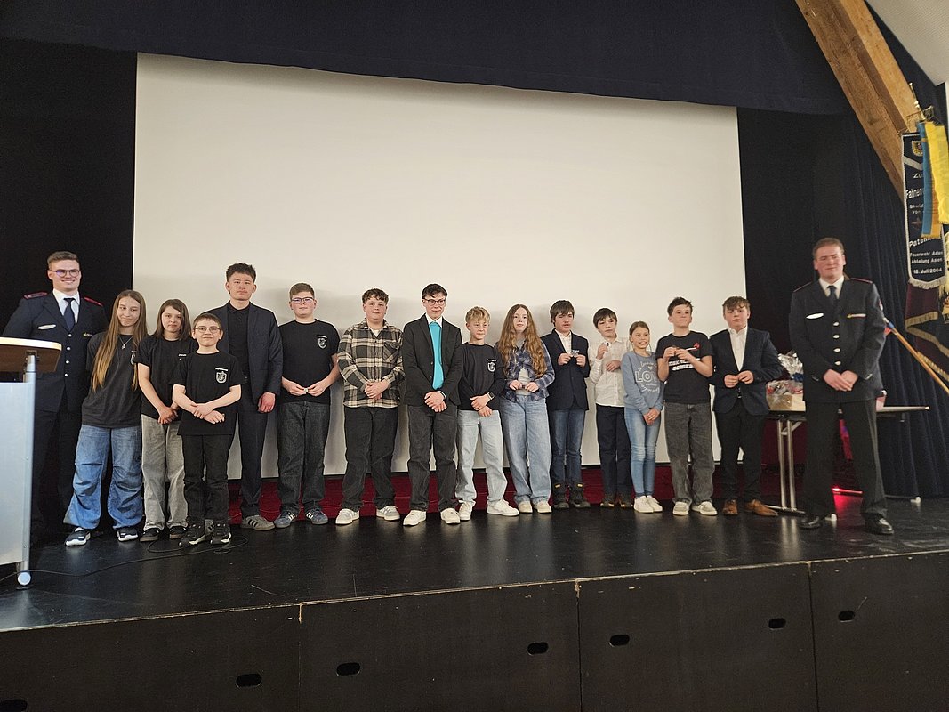 15 Jungen und Mädchen der Jugendfeuerwehr legten 2025 erfolgreich die Jugendflamme Stufe 1 ab. Diese waren: Alexander, Angelina, David, Elias, Jan-Luca, Julian, Katharina, Leonard H., Leonard N., Lilly, Louis, Lukas, Marc, Selim und Tim. Jugendwart Niklas Kuban zeigte sich stolz über die Leistungen. Geprüft werden unter anderem das Absetzen eines Notrufs, Erste Hilfe, Grundlagen der Brandentstehung sowie Knoten und Gerätekunde. Der stellvertretende Jugendwart Jannik Keydell berichtete zudem über Übungen und kameradschaftliche Aktivitäten, etwa den Berufsfeuerwehrtag.