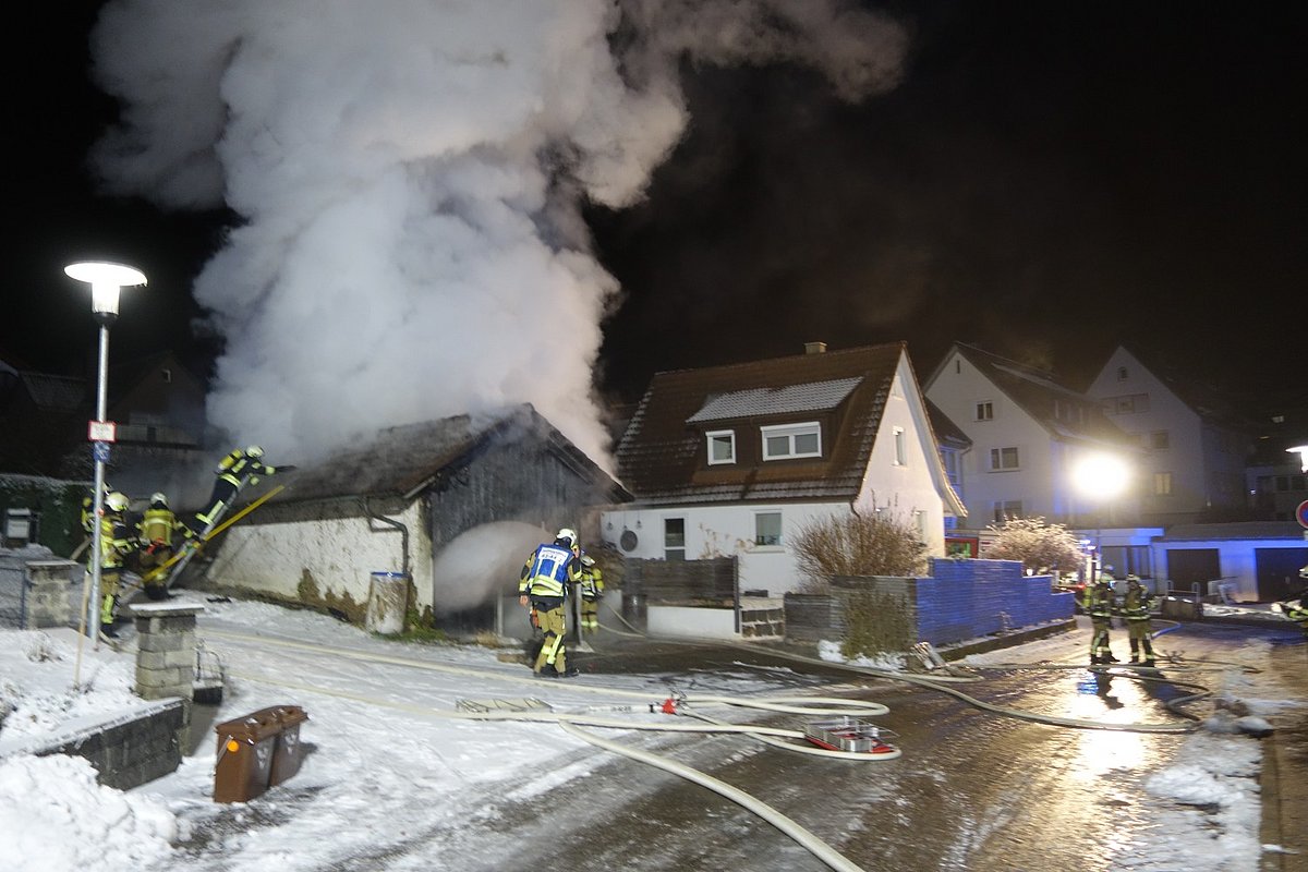 Im Einsatz: MZF (1/1), LF16/12-1 (1/8), LF16/12-2 (1/8), GW-T (1/5), DLK der Feuerwehr Aalen
