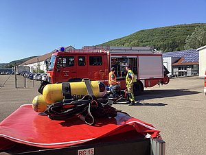 Am Montagmorgen wurden wir zu einer Firma in die Heidenheimer Straße alarmiert. Dort kam es an einer Maschine zu einem Gasaustritt, welches zum Kühlen und Löschen eingesetzt wird. Unter Anleitung eines Mitarbeiters ging der Angriffstrupp unter Atemschutz zur Maschine vor, um die aktuelle Temperatur zu prüfen. Da das Leck in der Leitung nicht unter Druck abgedichtet werden konnte, musste die Maschine kontrolliert heruntergefahren werden, was mehrere Stunden in Anspruch nahm. Während dieser Zeit kontrollierte der Angriffstrupp unter Atemschutz immer wieder die Maschine. Erst am späten Nachmittag war die Maschine soweit abgekühlt, dass die Gaszuleitung abgeschiebert werden konnte und keine Gefahr mehr von ihr ausging. Danach rückten wir ab.