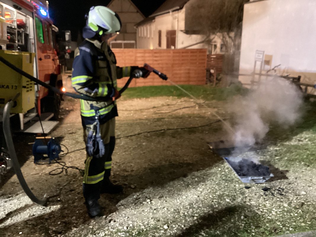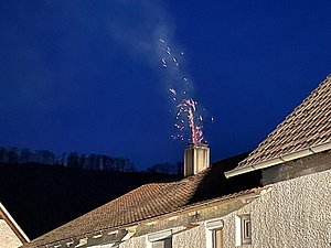 Ein Kaminbrand darf auf keinen Fall mit Wasser gelöscht werden, da durch die schlagartige Verdampfung der Kamin regelrecht gesprengt werden kann, was zu großen Schäden und einer enormen Brandausbreitung führen kann. Da keine akute Gefahr bestand, informierten wir den zuständigen Schornsteinfeger, der sehr schnell vor Ort war und den Schornstein von Ablagerungen befreite. Wir haben diese Ablagerungen nach draußen gebracht und abgelöscht. Verletzt wurde niemand.